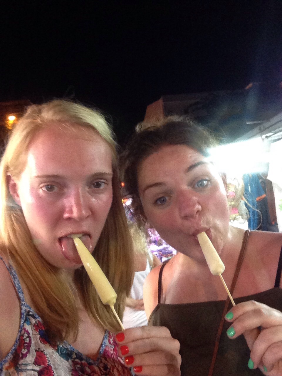 After dinner, we wandered around the city’s night market. It was full of the same old tat that Lauren and I had seen at countless other markets around Asia, but we realised that this was the English Roses first market so we wandered slowly and let them take in all the delights. They ended up getting some intriguing ice cream sticks that looked like extra long mini milks.