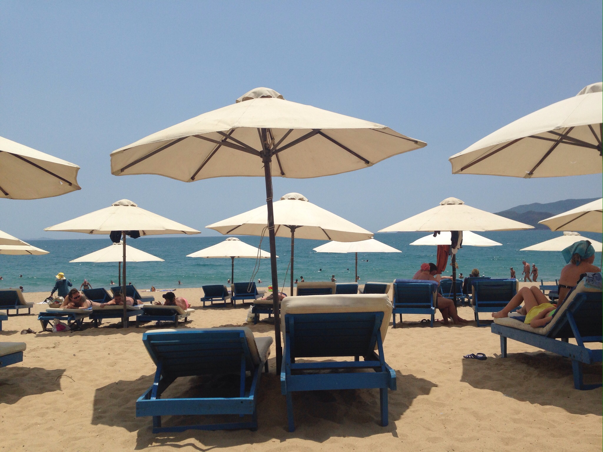 We found some sunloungers on the beach and set up camp. Lauren and Parker went in search of sustenance, in the form of pastries, while Freya and I napped in the sun.