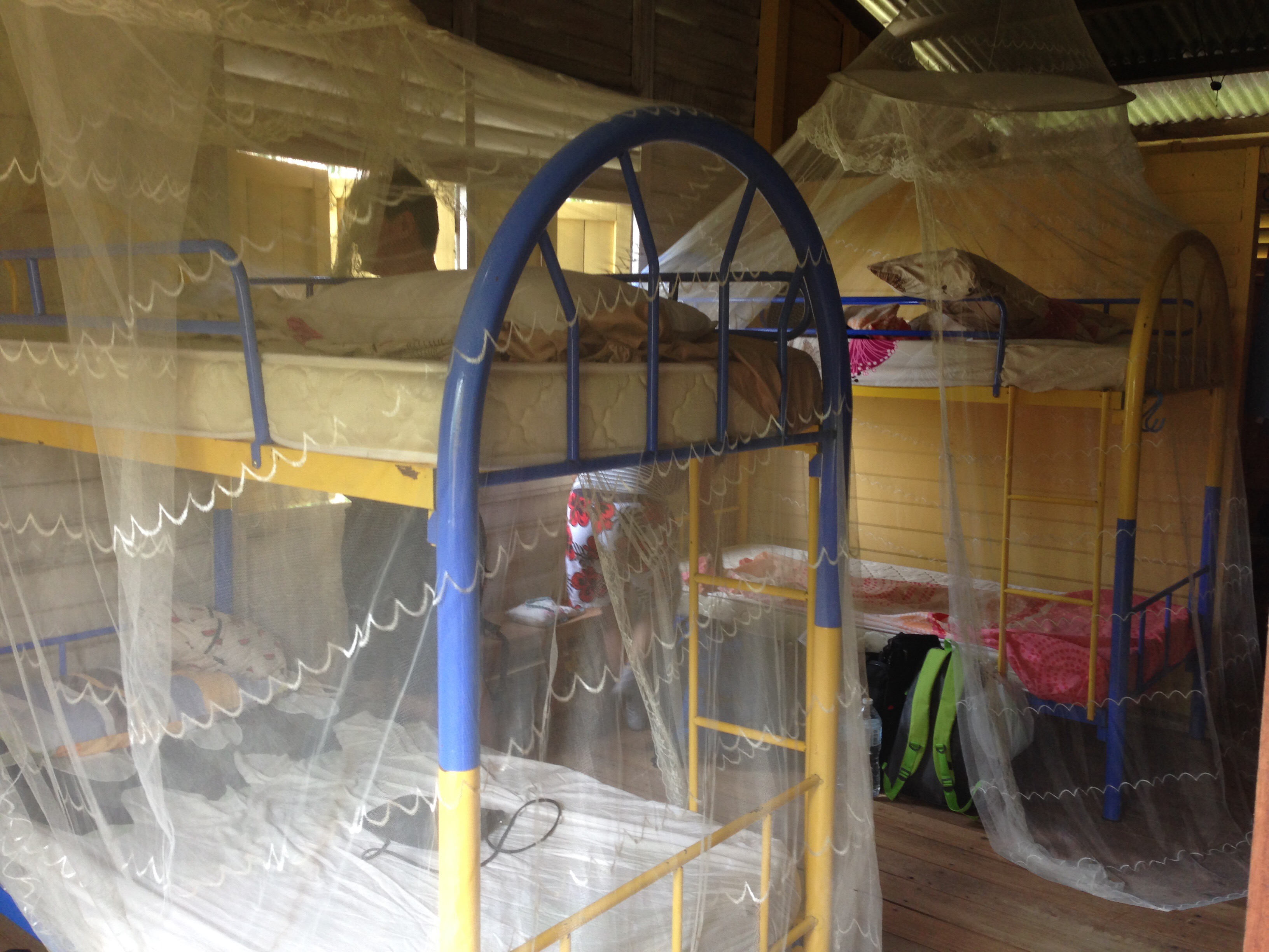 It was essentially a raised shed, with wooden floor boards that had cracks between them where you could see down to the dirt below. The roof was corrugated iron. There were two bunk beds in one room and a small partition making a separate room with another two bunkbeds.