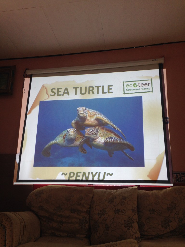 The presentation told us all about the different types of turtles we would be seeing and all the different information we needed to record when we did come across one.