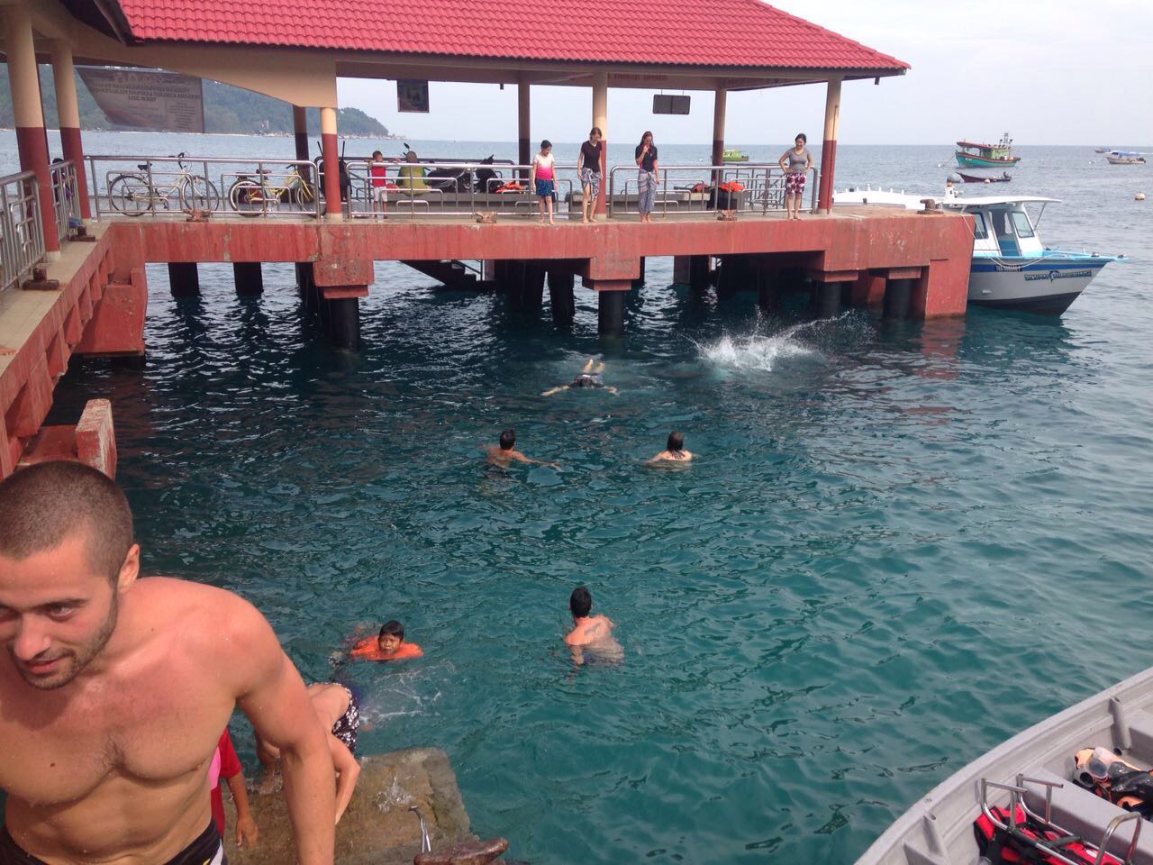 We had a little swim around and then headed to the pier for Initiation; jumping off the pier.