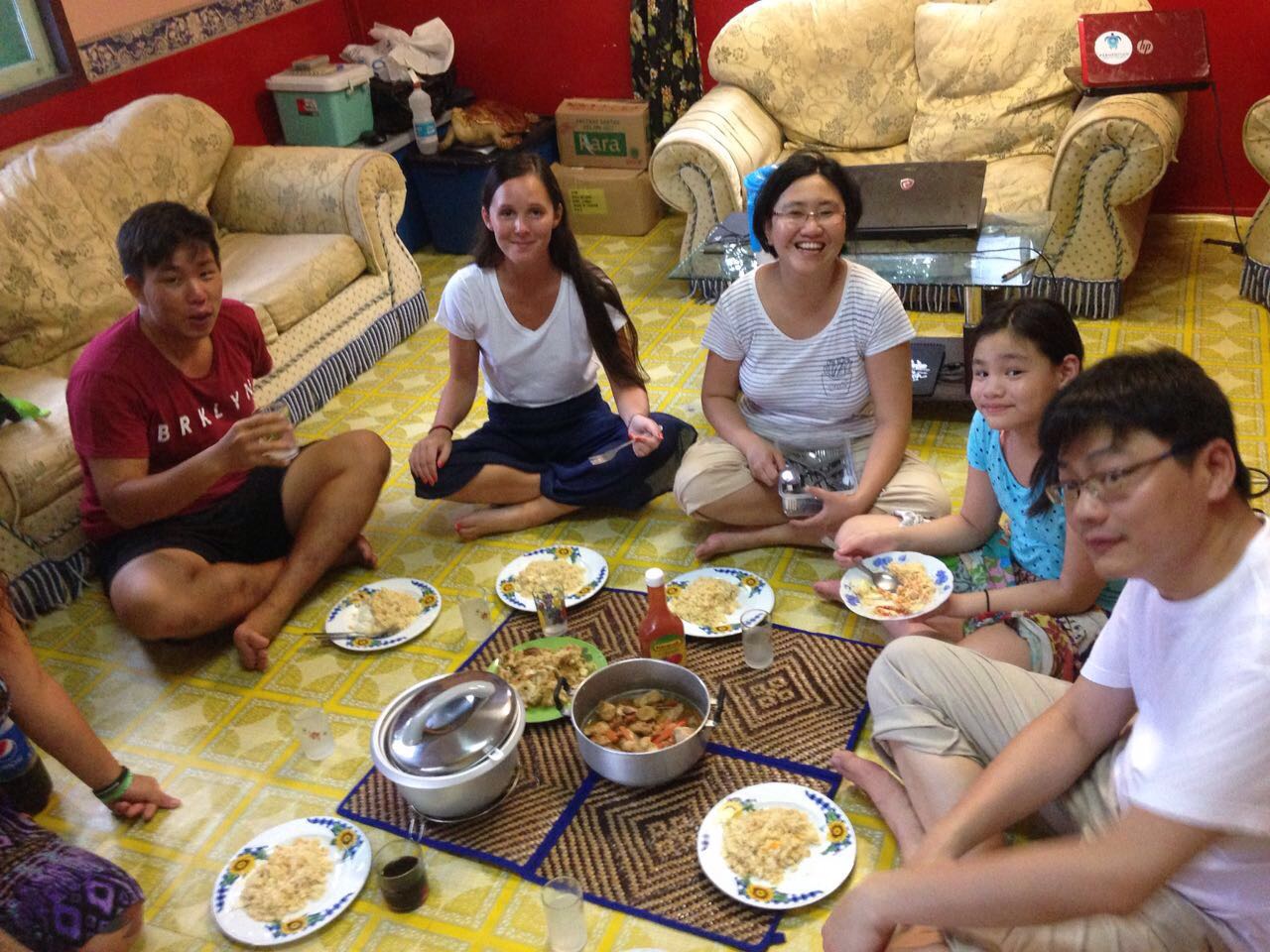 Sam and LiLing ended up doing the cooking with Georgia and I helping. We had veggie fried rice and all sat around a mat on the floor to eat dinner. It wasn’t the most comfortable but apparently that’s how the locals do it.